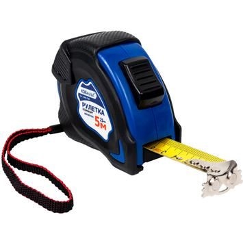Рулетка КОБАЛЬТ Комфорт 5м x 25мм обрезиненный корпус, автостоп, магн.крючок, мат. покрытие ленты