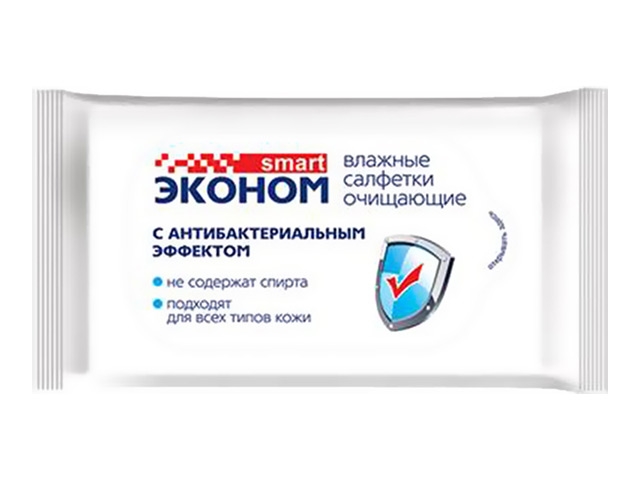 Влажные антибактериальные салфетки ''Эконом smart'' эффективно и бережно очищают кожу рук, где бы вы ни были - дома, на прогулке, в гостях. Убивают 99,9% микробов. Оставляют ощущение свежести. Подходят для всей семьи. Продукт клинически протестирован. Не содержит спирта.