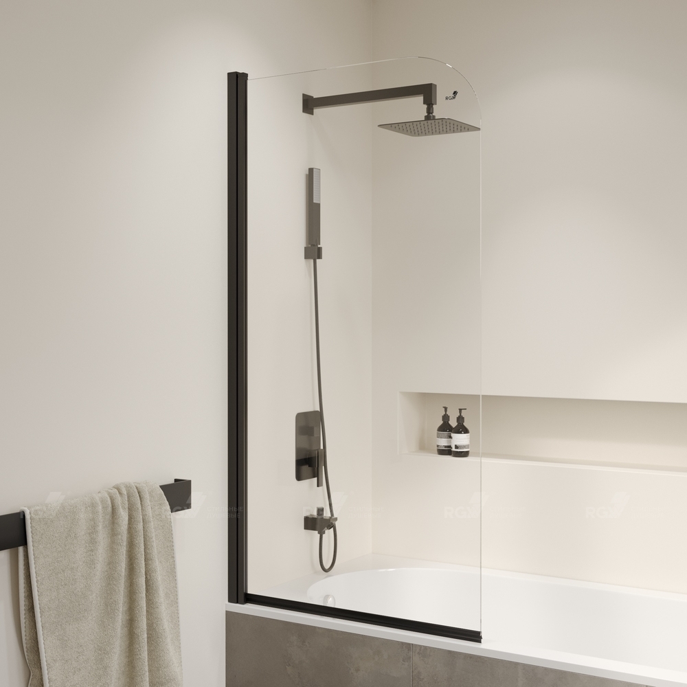 Шторка на ванну RGW, 80*150см, SC-09-B, Черный/Прозрачное/6 мм