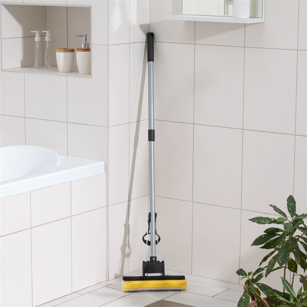 Швабра для мытья пола с ролик.отжимом, 120 см, телескоп. ручка 70-105 см, насадка 27*6см