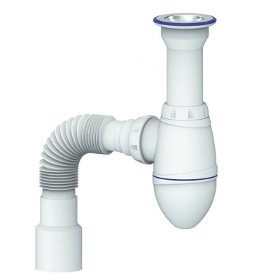 Сифон для умывальника 1.1/2ˮх40, литой нержавеющий выпуск, винт 80мм, с универсальной гибкой трубой.