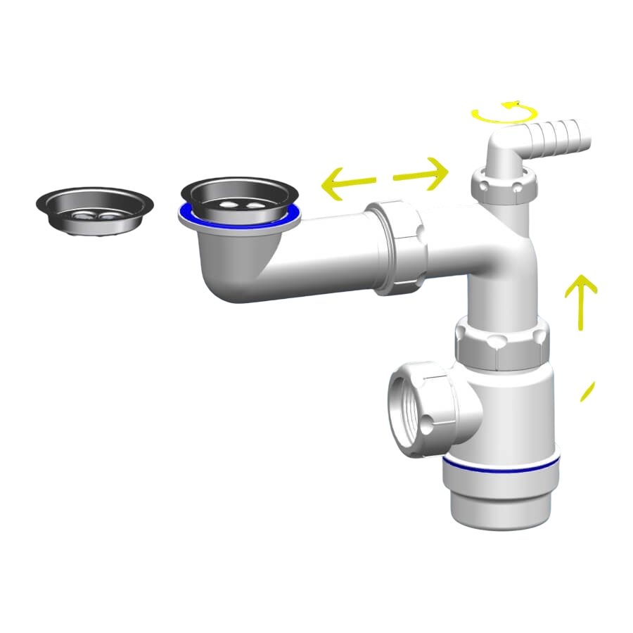 Сифон для кухонных моек с диаметром сливного отверстия 45 мм бутылочного типа с нержавеющей решеткой 63мм, с отводом для бытовой техники.Выход для подключения к канализации 40мм.Конструкция данного сифона имеет телескопическую подвижную систему, которая максимально увеличивает свободное пространство под мойкой и обеспечивает легкий процесс установки и подключения изделия.