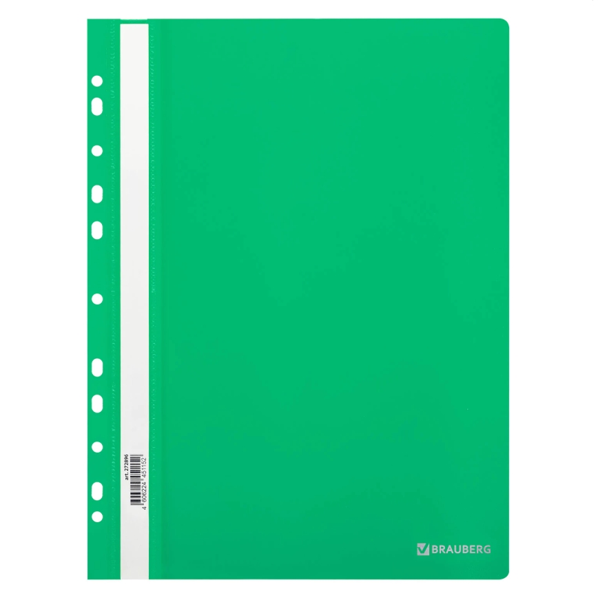 Скоросшиватель пластиковый с перфорацией BRAUBERG EXTRA, А4, 140/180 мкм, зеленый, 272896