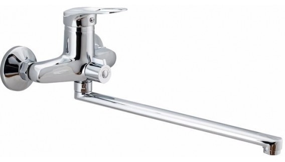 Однозахватный смеситель EKKO для ванны с длинным поворотным изливом и хромированным покрытием: латунный корпус и керамический картридж гарантируют долгий срок службы. Длинный излив удобен для набора воды в ванну и раковину.