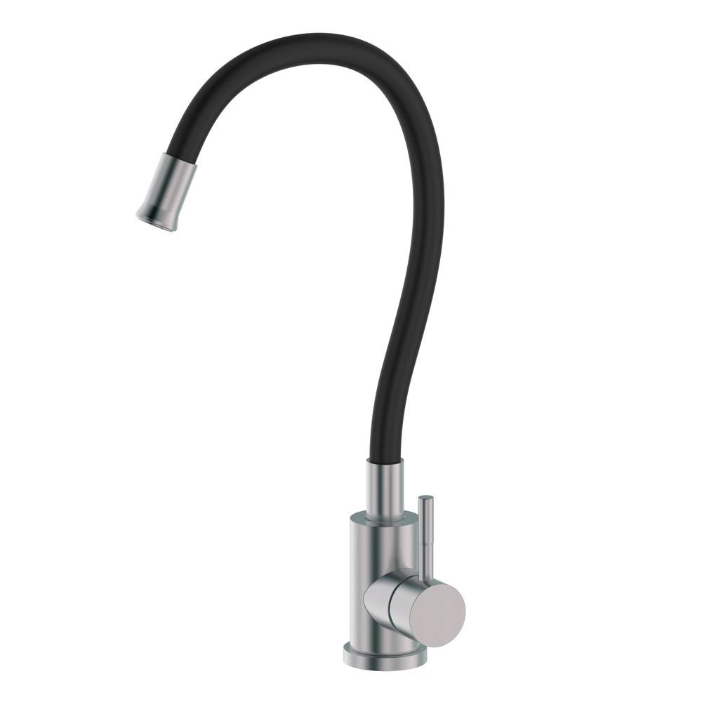 Однозахватный смеситель для кухни Balear из нержавеющей стали с удобным гибким изливом.
