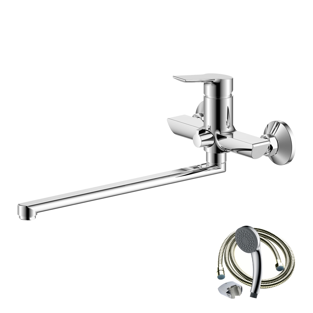 Смеситель комплектуется душевыми аксессуарами.