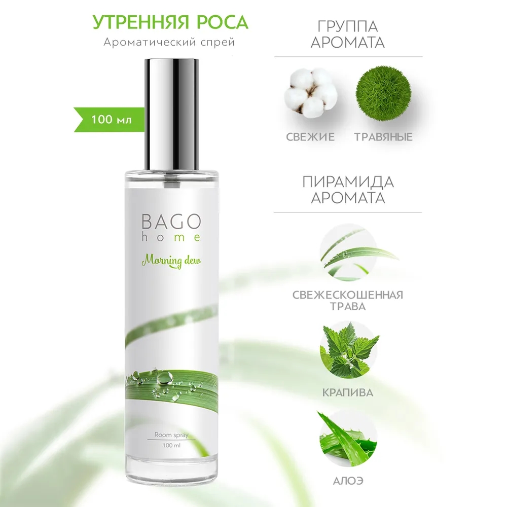 Утренняя роса BAGO home спрей ароматический для дома 100 мл