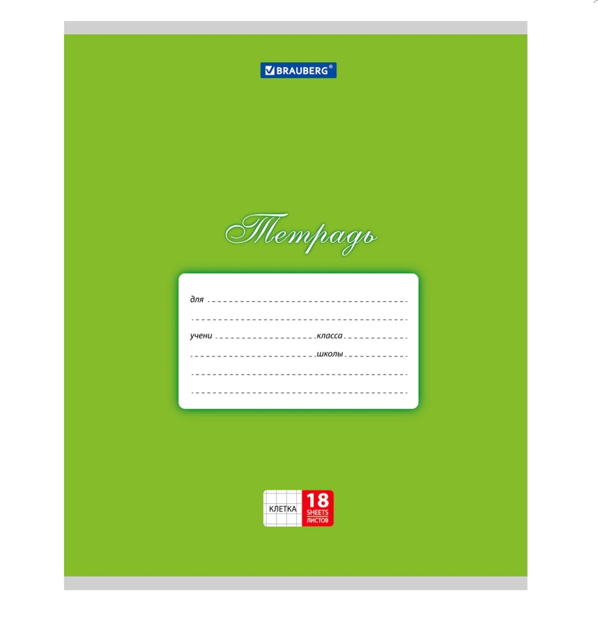 Тетрадь 18л. BRAUBERG КЛАССИКА, клетка, обложка картон, ЗЕЛЕНАЯ, 104730