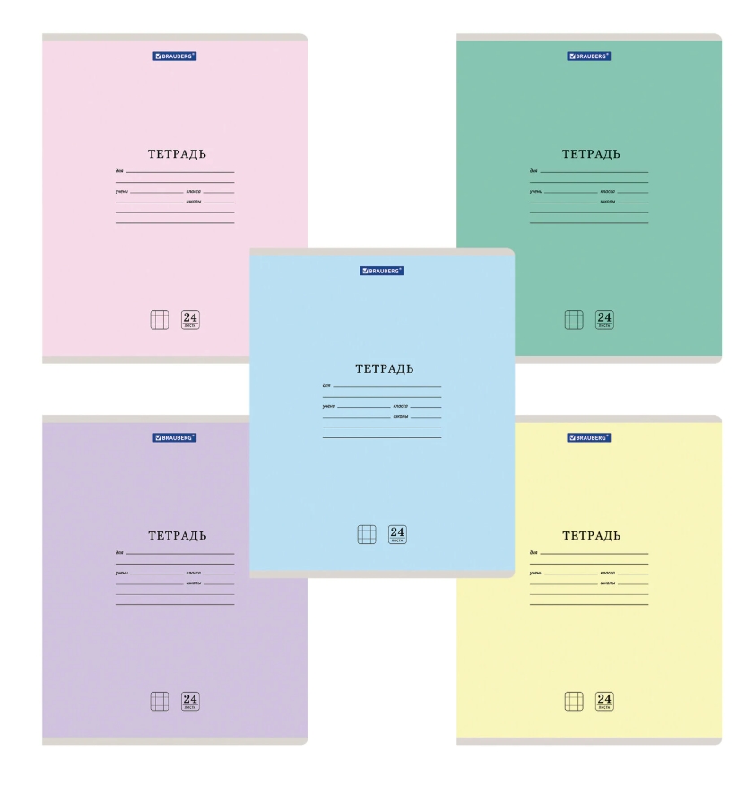 Тетрадь 24л. BRAUBERG КЛАССИКА NEW клетка, обложка картон, АССОРТИ (5 видов), 105702