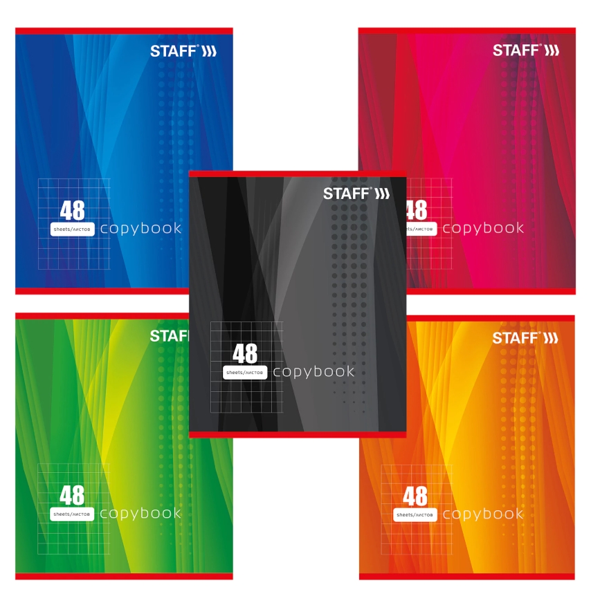 Тетрадь А5 48л. STAFF скоба, клетка, офсет №2 ЭКОНОМ, обложка картон, ОДИН ЦВЕТ (линии), 402781