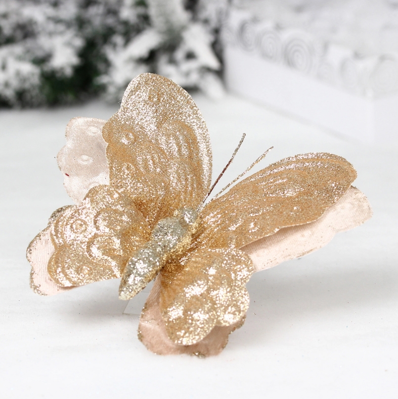 Лёгкость и невесомость: украшение-бабочка в цвете шампань добавит вашей ёлке воздушности и изысканного блеска.