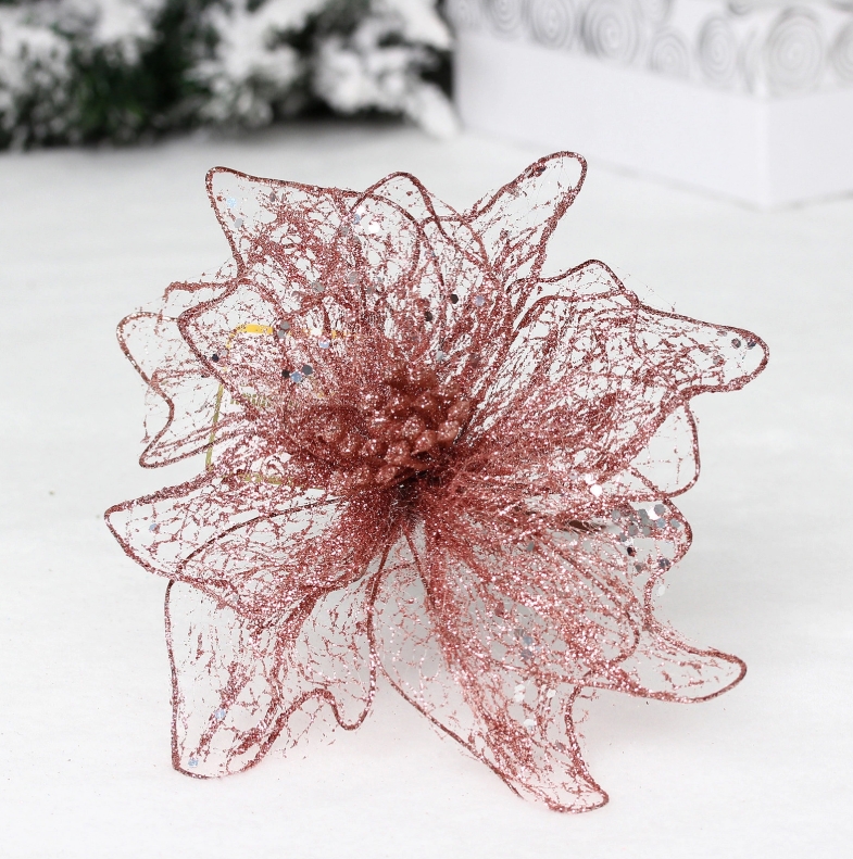 Украшение новогоднее ˮПуансеттия - Лунная ночьˮ 26 см, Розовое золото