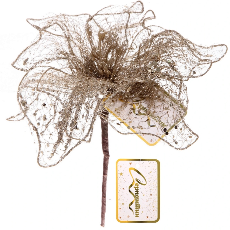 Украшение новогоднее ˮПуансеттия - Лунная ночьˮ 26 см, Шампань
