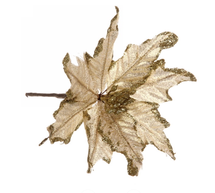 Снежная королева: золотая пуансеттия ˮМетелицаˮ — крупное украшение, создающее эффект пышного, мерцающего снега.
