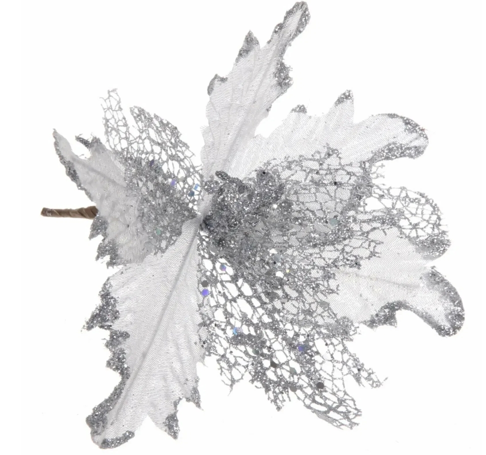 Украшение новогоднее ˮПуансеттия-Нежностьˮ 23 см, Серебро