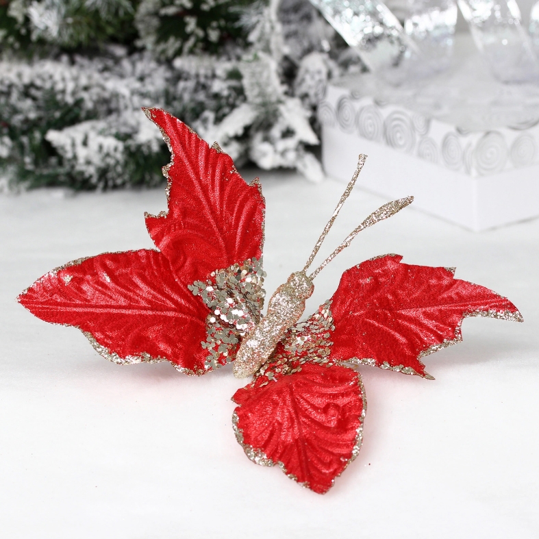Украшение новогоднее ˮВолшебная бабочкаˮ 24*14 см, Красный/шампань