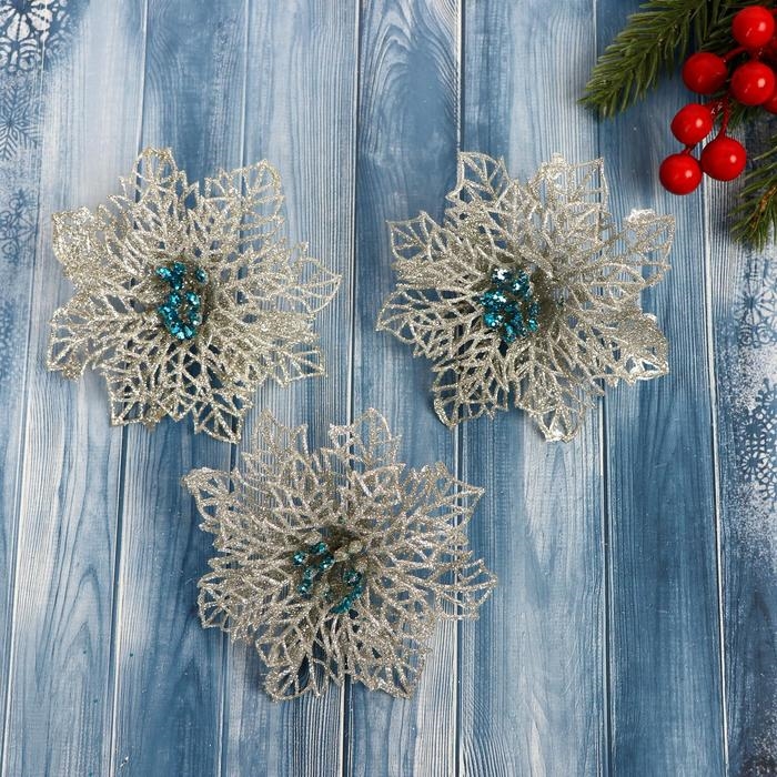 Украшение ёлочное ˮАжурный цветокˮ (набор 3 шт) 10,5 см, серебро