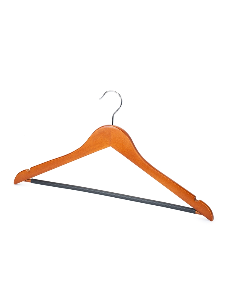 Прочная деревянная вешалка, прослужит Вам намного дольше в отличии от пластиковых аналогов.