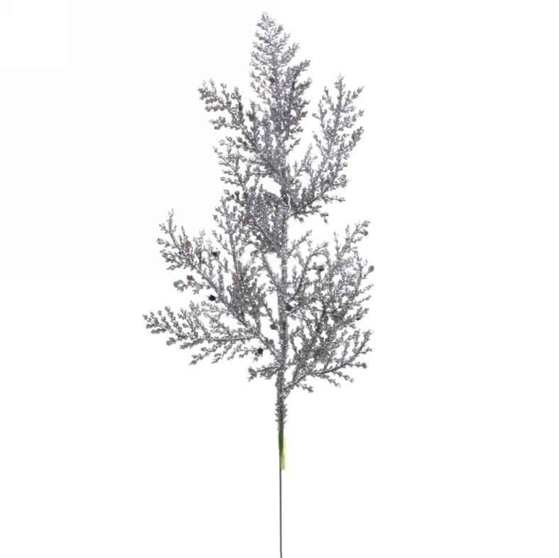 Добавьте в ваш новогодний интерьер стильного сияния! Изысканная серебристая ветка с эффектом ледяного блеска станет элегантным акцентом праздничного декора.