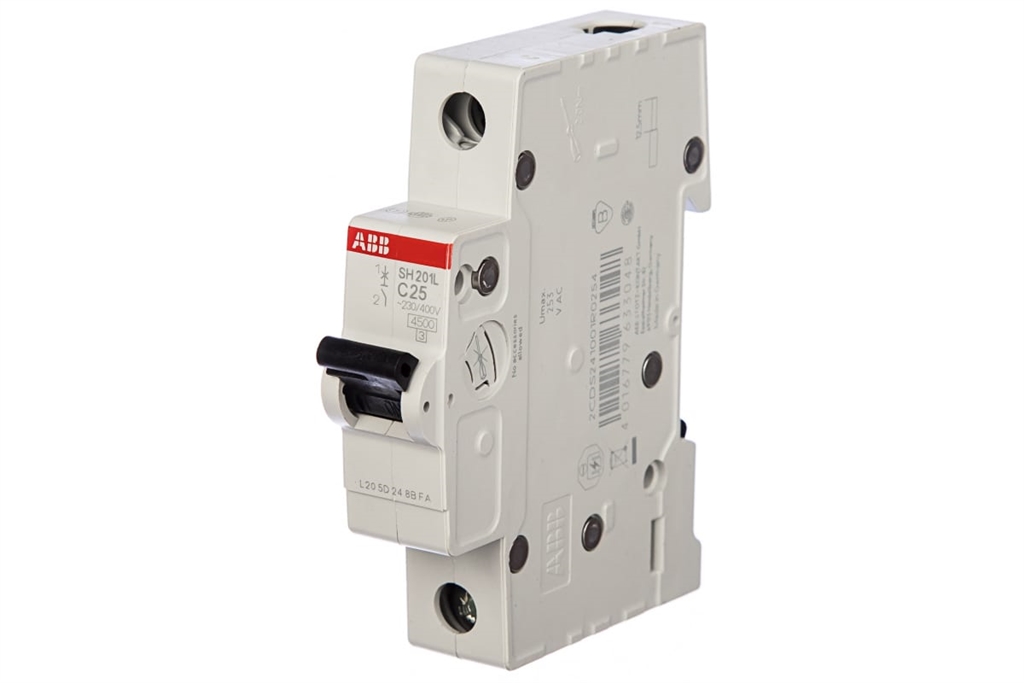 Однополюсный (1P) автоматический выключатель ABB SH201L с номинальным током 25 Ампер.