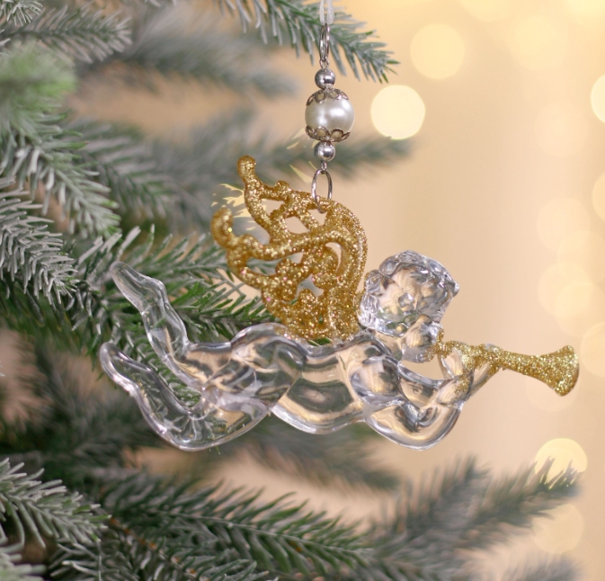Ёлочная игрушка «Зимнее волшебство. Ангел с трубой», 14×8 см, прозрачно-золотой