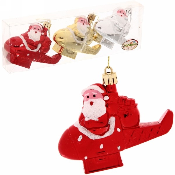Ёлочные игрушки ˮНовогодний самолетˮ 9 см, микс (набор 3 шт)