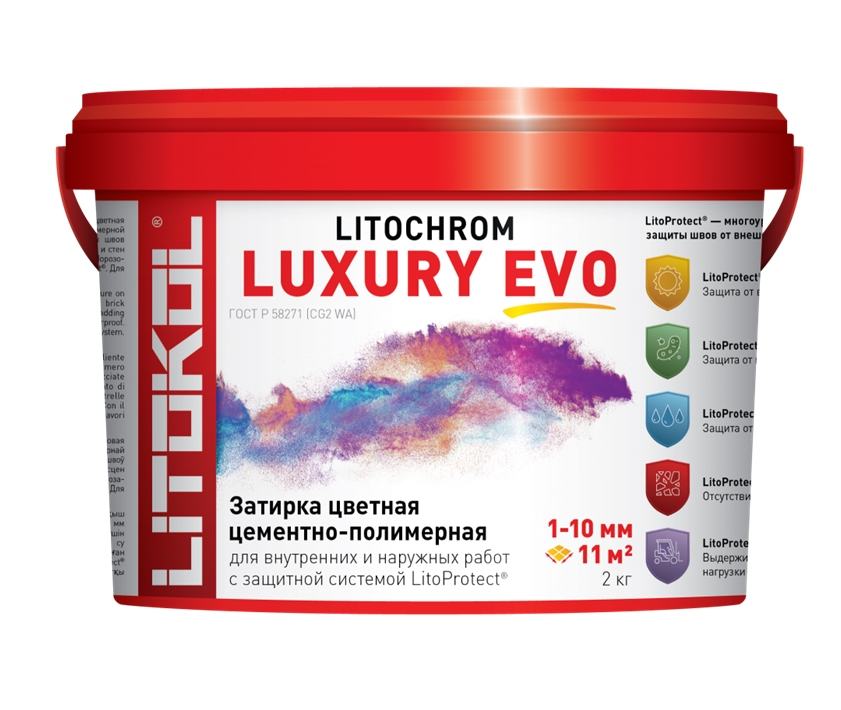 LITOCHROM LUXURY EVO — эластичная водоотталкивающая цементно-полимерная затирка с защитной системой LitoProtect®