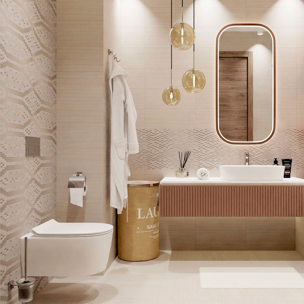 Вы получите несколько вариантов раскладки с использованием до 5 коллекций плитки, а также полную развертку стен и пола для мастеров.